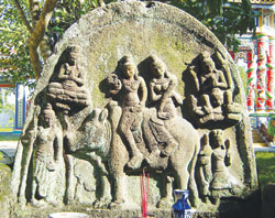 Vậy đã có hai câu chuyện về Kỳ Thạch phu nhân và Thai Dương phu nhân liên quan đến thế giới của những phiến đá thần. Tiếp đây là chuyện về phiến đá thứ ba, cũng trên đất Thừa Thiên - Huế, ở làng Ưu Điềm, hiện vẫn đang được thờ tại ngôi chùa của làng này. Phiến đá hình vòng cung, có khắc chạm hình các vị thần mà theo một số nhà nghiên cứu như Trần Kỳ Phương và Võ Quang Yến, là nhằm mô tả đám cưới của hai vợ chồng thần Shiva và nữ thần núi Tuyết (có tên Parvati). Shiva là vị thần hết sức đặc biệt trong văn hóa tâm linh Ấn Độ, đặc biệt ở chỗ ông là vị thần vừa phá hoại mà lại vừa sáng tạo. Theo một số nhà nghiên cứu phương Tây, tên gọi Shiva có nghĩa là tốt lành, rõ ràng không hợp với những hành động hủy diệt và phá hoại của vị thần này. Nhưng GS Lê Xuân Khoa cho rằng, theo quan điểm triết học của Ấn Độ thì “không có sự sống nào mà không tiến tới hủy diệt, chính do hủy diệt mà lại có đời sống (mới). Sống và chết không những chỉ nối tiếp nhau mà còn đồng nhất với nhau. Sống tức là một hành động tự hủy diệt (vì) sống tức là đang chết dần. Bởi vậy: với tư cách là cứu cánh của mọi vật - Shiva là tử thần, nhưng với tư cách là nguyên lý của sáng tạo – Shiva lại là nguồn sống. Vì thế, Shiva vừa được coi là một hung thần phá hoại, hủy diệt muôn vật, lại vừa được coi là một phúc thần gieo rắc (mầm mống mới) và bảo vệ đời sống”. Ông có hai đời vợ, kết hôn với hai người, nhưng thực ra cũng chỉ... một người thôi. Vì “một người” ấy đã hóa thân thành hai thiếu nữ yêu thương Shiva trong hai kiếp.