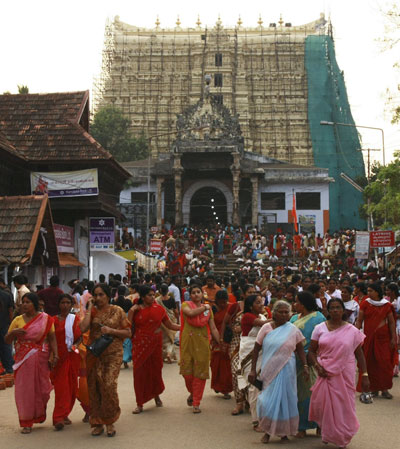 Đền Sree admanabhaswamy ở thành phố Thiruvananthapuram, thuộc bang miền nam Kerala được xây dựng vào thế kỷ 16 và là một trong 108 trung tâm thờ phượng thần Vishnu chính ở Ấn Độ. Cuối tuần trước, người ta phát hiện một kho báu tại đây mà con số ước tính giá trị của nó đang được tăng lên từng ngày.