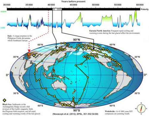 Khoảng 41.000 năm trước, từ trường Trái đất đã một lần đảo cực toàn phần, và nếu lúc đó có la bàn, kim sẽ chỉ về hướng nam chứ không phải hướng bắc.