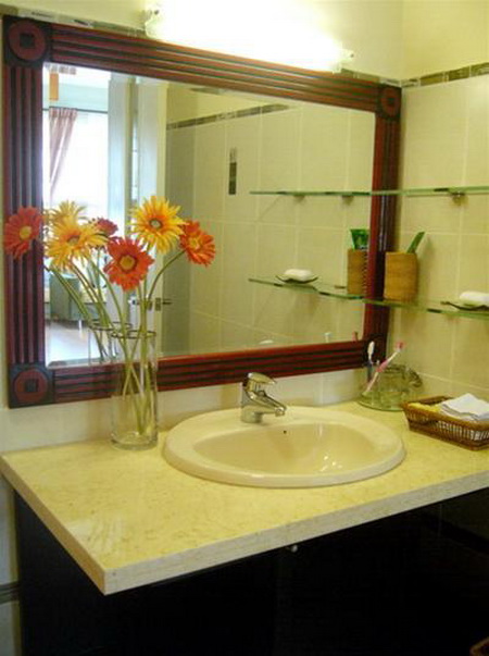 Một chiếc gương đơn giản nhưng tiện ích nơi bồn rửa - Ảnh: H.TR.