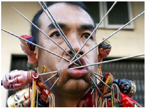 Những tiếng chiêng, tiếng kèn, tiếng tù và, tiếng trống rền vang vọng thúc hòa cùng những câu thần chú trầm trầm mang âm hưởng xa xăm,… ở các vùng Châu Phi, Châu Mỹ, Tây Tạng, Ấn Độ,… mang những âm vực mà khi hệ sinh học giao tiếp với những tần số và phổ hài ấy g tạo nên hiệu ứng kích thích năng lượng sinh học. Chúng ta thường gặp ở những người da đỏ, da đen khi những âm thanh lạ vang lên khiến họ có thể dùng kim đâm qua da, qua mũi, đầu,… mà vẫn không sao cả!.