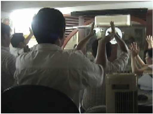 -Tập trung lắng nghe âm thanh kích hoạt Diệu pháp âm thiền chuyển,gồm 3 đĩa CD có công năng từ thấp đến cao. Đây chính là những âm thanh đã được tạo nên từ sự khai mở Năng lượng tâm thức cảm ứng,đồng thời đó cũng là máy thu,phát năng lượng vi sóng vô cùng hữu hiệu sau khi đã được kích hoạt ,hóa giải rất thành công những trường hợp nơi ở,nơi làm việc,..bị tác động của những trượt khí (tà khí).Những âm thanh kích hoạt bởi 2 nguyên ngữ cơ bản biểu tượng Thượng trí (đọc như chữ Ô kiêu gọi năng lực tại các khu vực : Bách hội,Ấn đường,Yết hầu) ,Tâm bồ tát (đọc tại các khu vực : Yết hầu,Chấn thủy,Thượng vị).Những học viên sau khi tu tập đa số điều đạt được những kết quả như : giọng nói mạnh hơn, vang hơn,thuyết phục hơn,.. thần khí sáng ra,thánh thiện hơn,nghe được những tinh âm linh diệu,..thấy được những linh ảnh : Hào quang,Phật,Chúa,Thánh,..nghĩa là những hình ảnh Chân-Thiện-Mỹ tạo tác từ tâm quán niệm trong quá trình tu tập của chúng ta đồng hòa hướng …(tham khảo Báo cáo kết quả tập luyện Diệu pháp luân thiền chuyển)
