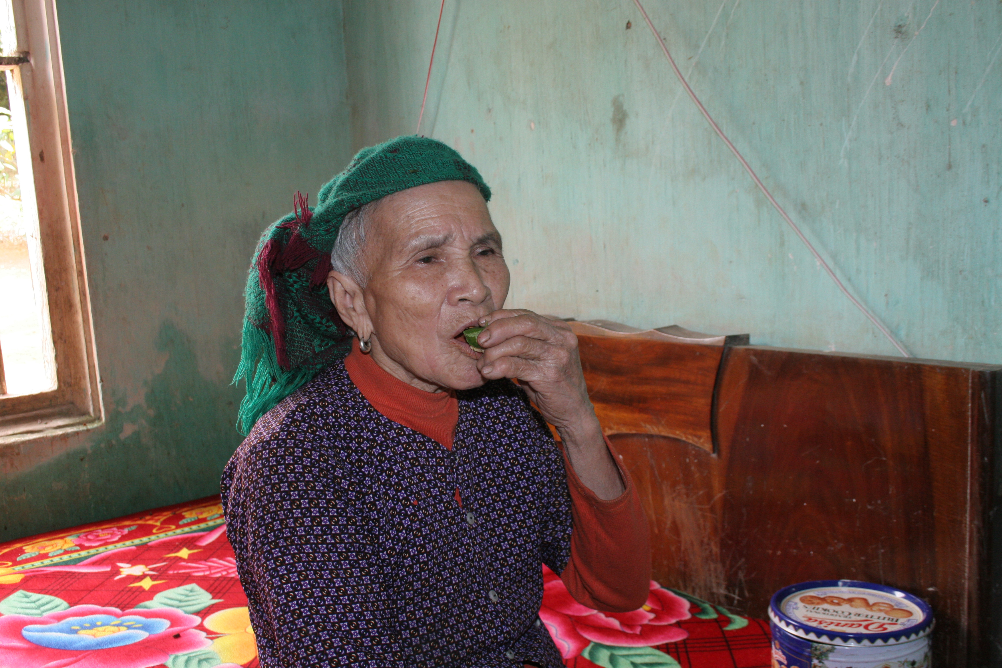 | Cụ Quyết đọc thần chú trước khi ăn trầu để thổi cho bệnh nhân. |