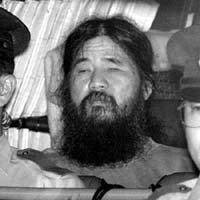 Giáo chủ Asahara tại phiên tòa xét xử y năm 2004.