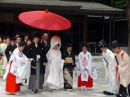 | Đám cưới truyền thống được tổ chức trong một ngôi đền thờ Thần Đạo |