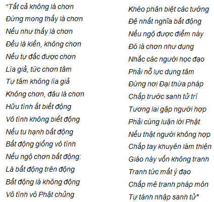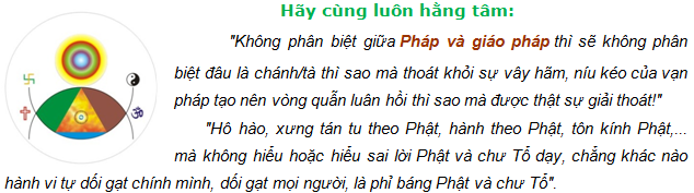 "Không phân biệt giữa Sám hối trước tướng/Tự tánh sám hối(vô tướng) và Quy y sắc tướng/Tự tánh quy y(vô tướng) và Tiểu thừa/Đại thừa và Chúng sanh tri kiến/Phật tri kiến và Thiền/Tọa thiền/Chánh Định(bất chấp tướng và vô trụ tâm) và... thì sẽ không phân biệt đâu là chánh/tà thì sao mà thoát khỏi sự vây hãm, níu kéo của vạn pháp tạo nên vòng quẫn luân hồi thì sao mà được thật sự giải thoát!"