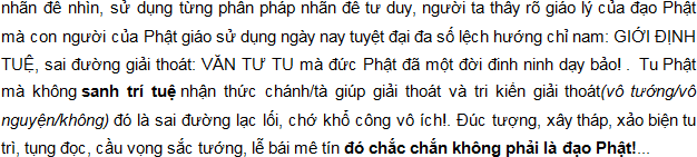 " "Không phân biệt giữa Tướng và Tánh/An thân(Lạc tướng cảm chiêu) và An tâm[Vô tướng hư minh(hỉ, lạc, an, bi)] thì sẽ không phân biệt đâu là chánh/tà thì sao mà thoát khỏi sự vây hãm, níu kéo của vạn pháp tạo nên vòng quẫn luân hồi thì sao mà được thật sự giải thoát!"